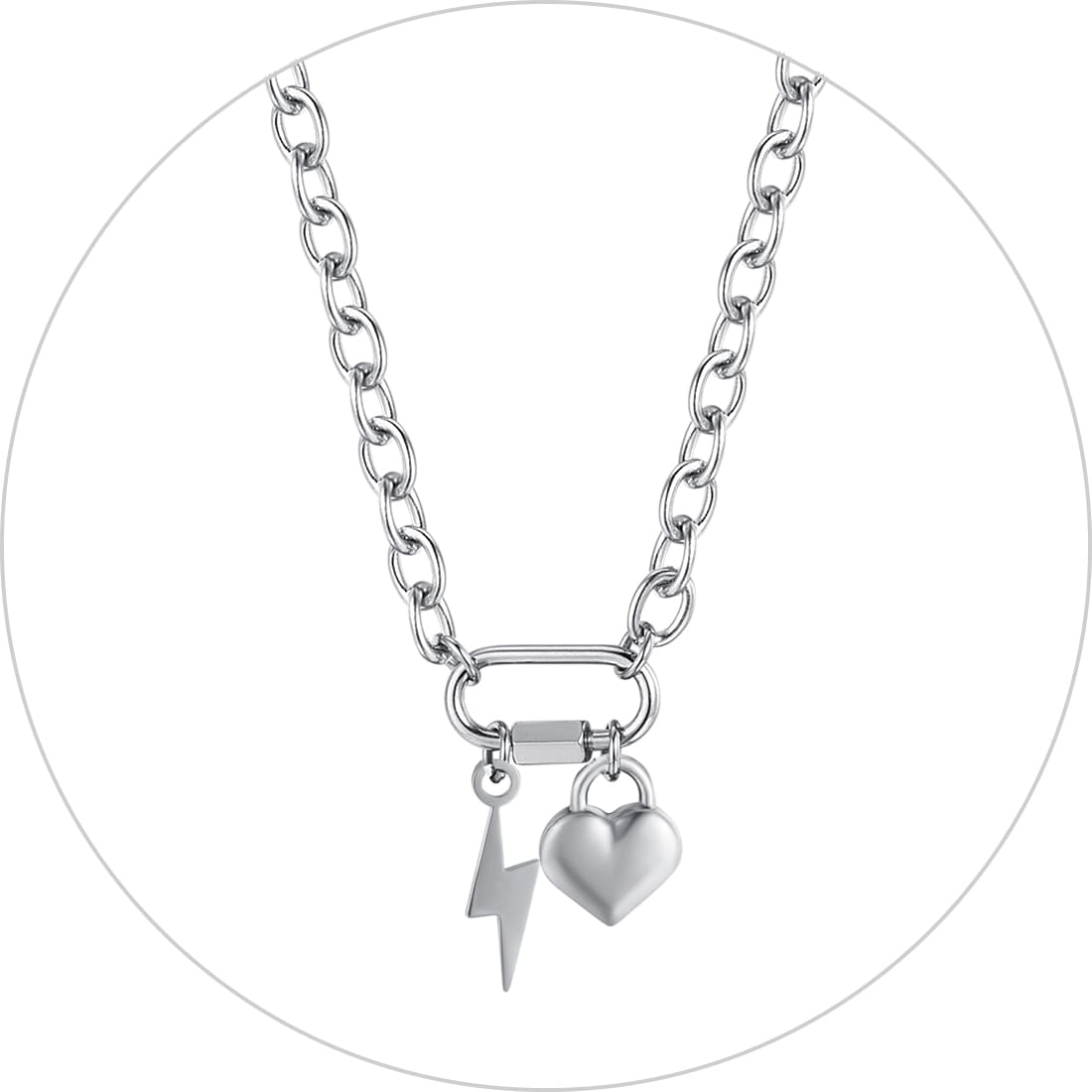 Cattureranno al primo sguardo e saranno in grado di completare il tuo outfit. La nostra selezione di collane donna è unica, pensata per farti notare in ogni occasione speciale. Semplici e delicate, o arricchite con cristalli, ciondoli, perline e pietre, le nostre creazioni sfruttano la forza dell’acciaio, materia prima resistente, robusta e sempre alla moda.
